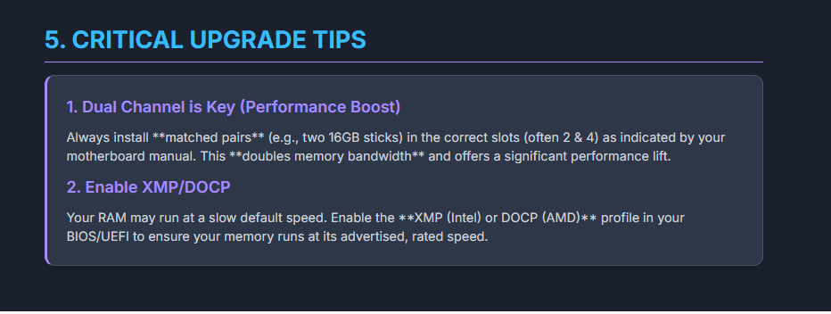 Based on my professional experience testing and reviewing PCs, here are key tips for maximizing RAM performance: