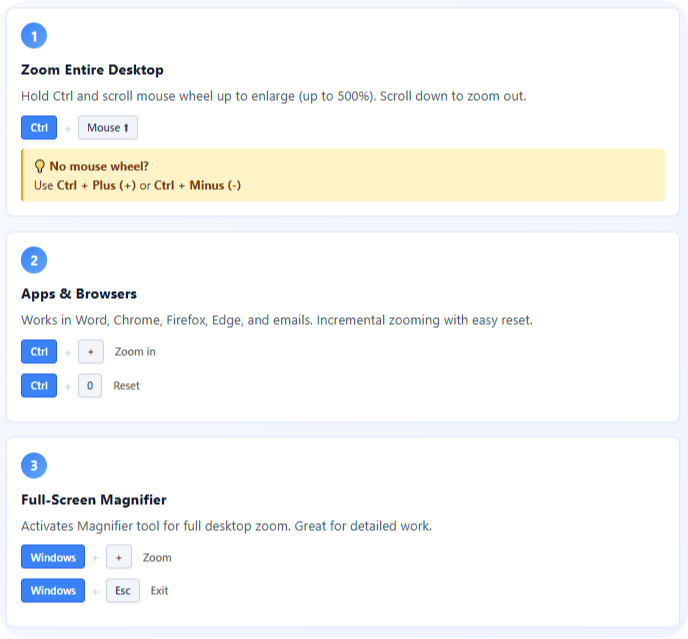 Ready to try? Pick one method today and see the difference. Share your favorite zoom tip in the comments, or tell me if this helped your setup. If you enjoyed this, check out my posts on PC optimization or accessibility hacks. Let’s keep our screens user-friendly—your eyes will thank you!
