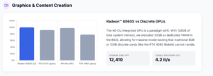 - Integrated Radeon 8060S handles GPU-accelerated tasks