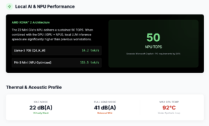 | Performance | ⭐️⭐️⭐️⭐️ – Strong multi‑thread and AI-assisted workloads thanks to the AMD Ryzen AI Max+ PRO 395-128 GB and 128 GB RAM; sustained loads are solid 🔍 |