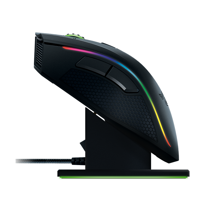 Keeping with the original Mamba design, you have the option of going wired or wireless with this mouse; the response rate is as low as 1ms in both modes, allowing for virtually no lag.