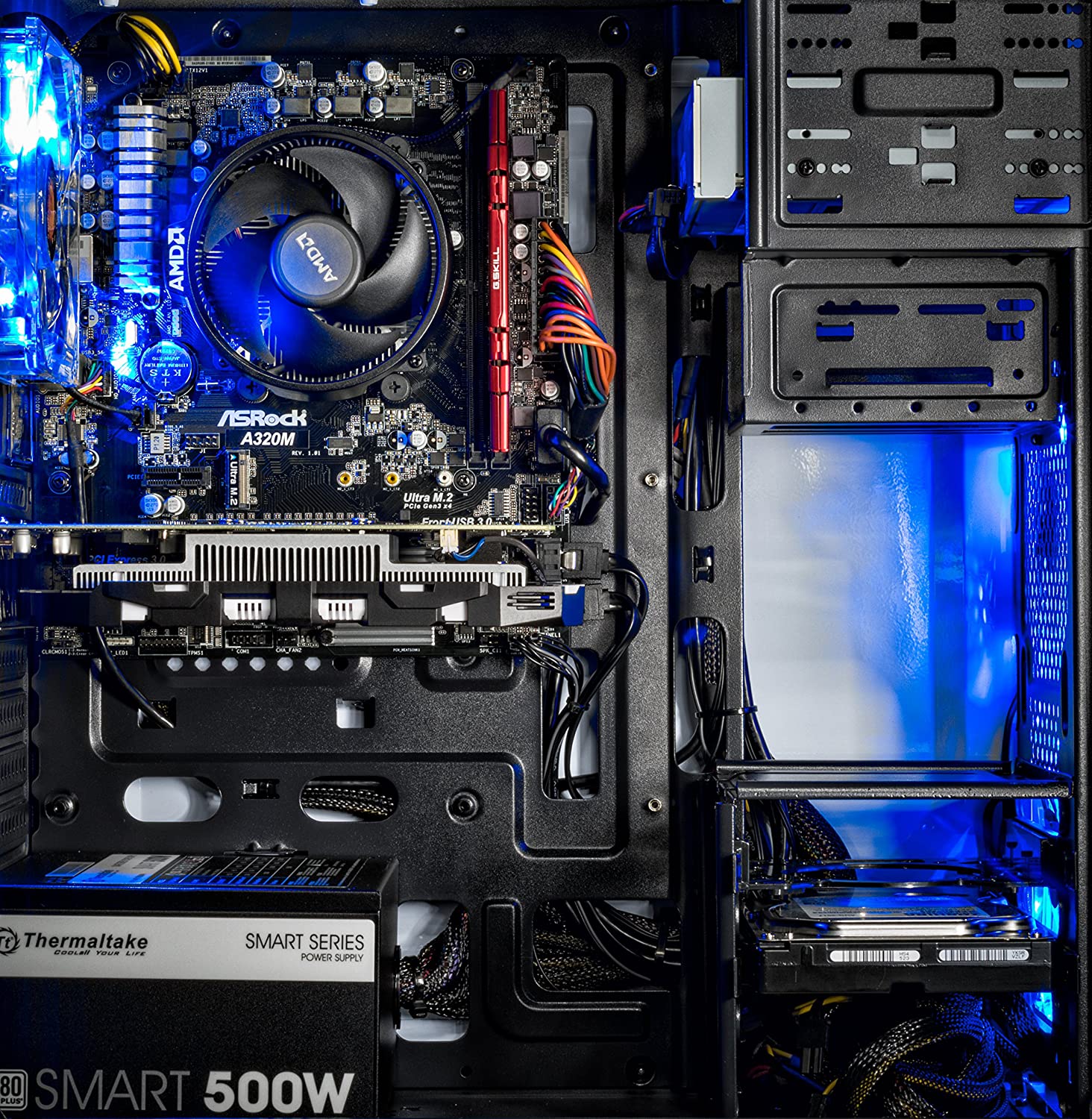 SkyTech have opted for a no-frills motherboard for this build – but that’s really the best choice for this budget. The ASRock A320M AM4 mATX motherboard is a pretty standard offering that would be typical for an entry-level build.